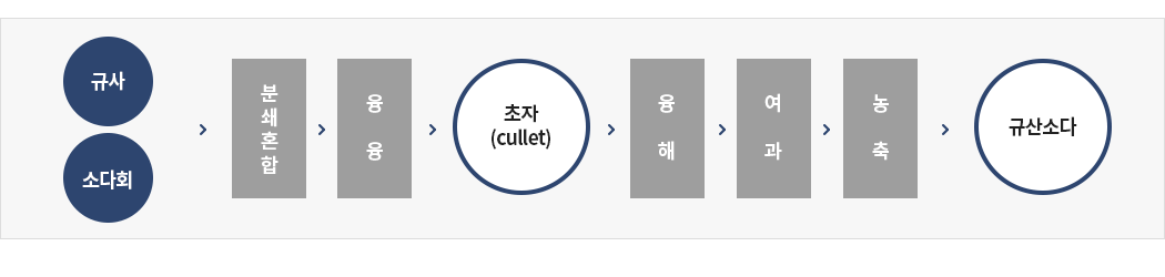 ⑤ Concentration according to decided concentrate. Na2CO3 + nSiO2 → Na2O·nSiO2 + CO2